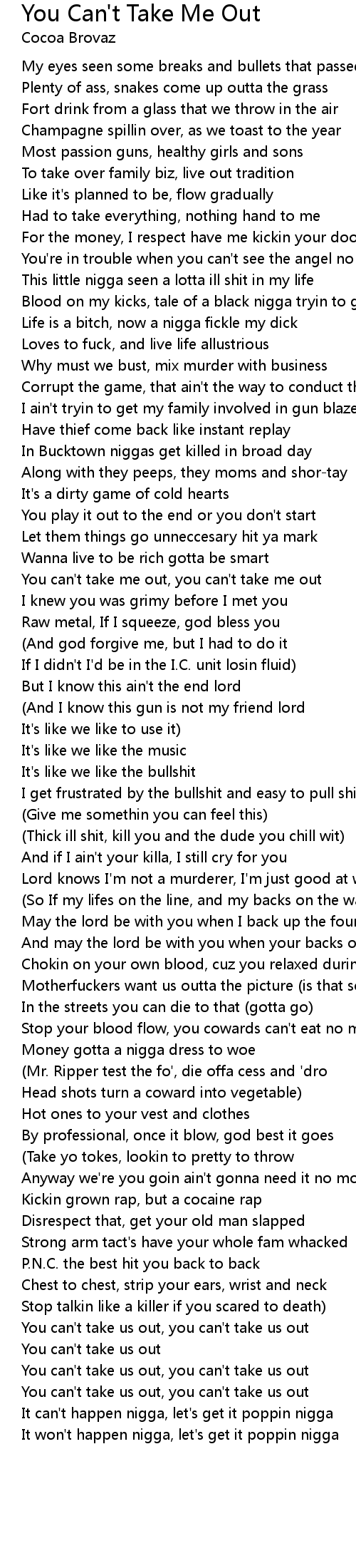 You can't take me out, you can't take me out |