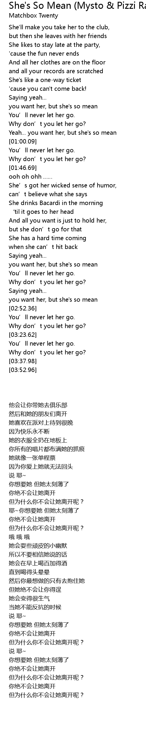 | [00:53.16] | Yeah... you want her, but she' s so mean |