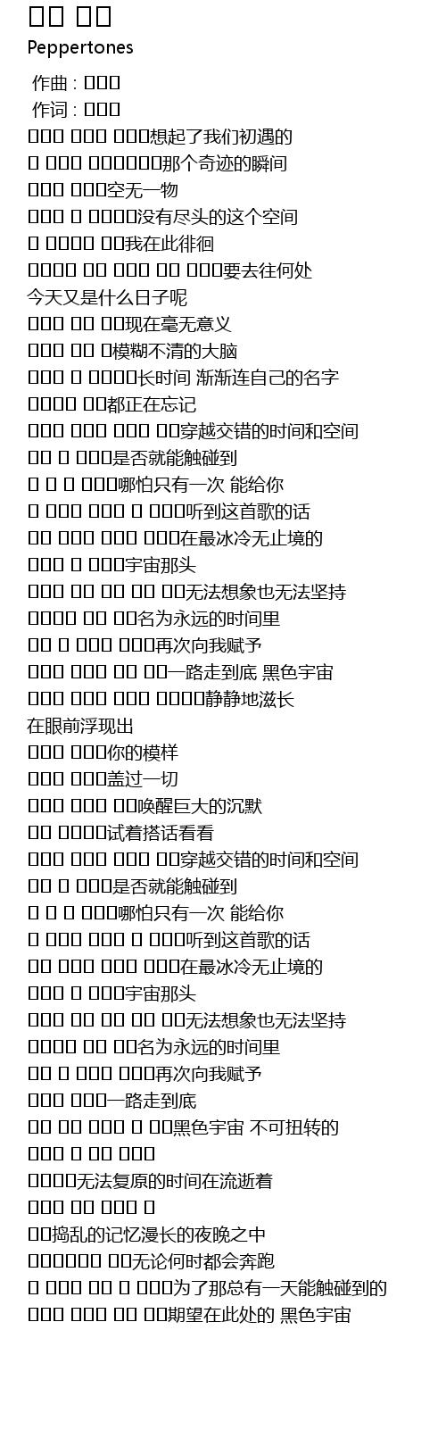 | [04:23.36] | 검은 우주 돌이킬 수 없는黑色宇宙 不可扭转的 |