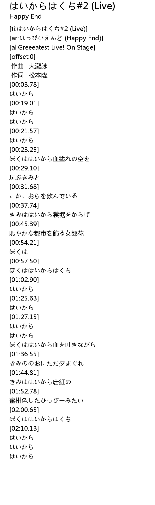 | [ti:はいからはくち#2 (Live)] | |