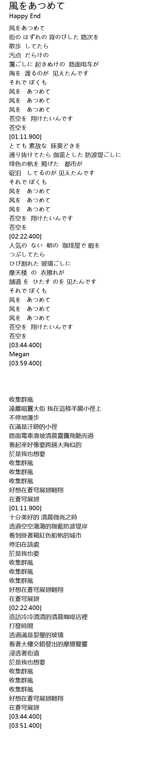 | [03:04.400] | 摩天楼 の 衣擦れが |