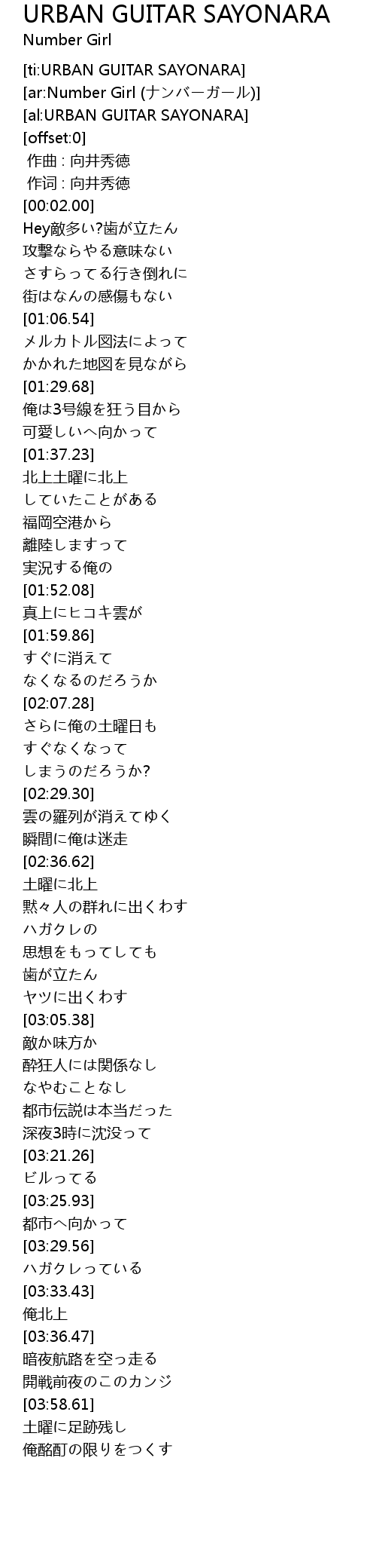| [00:00.00] | 作曲 : 向井秀徳 |