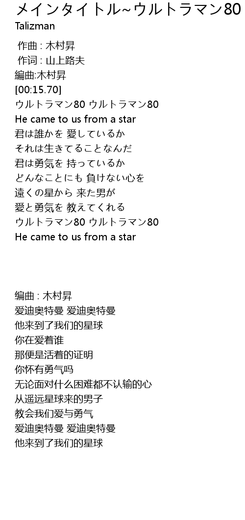 | [00:15.78] | ウルトラマン80 ウルトラマン80 |