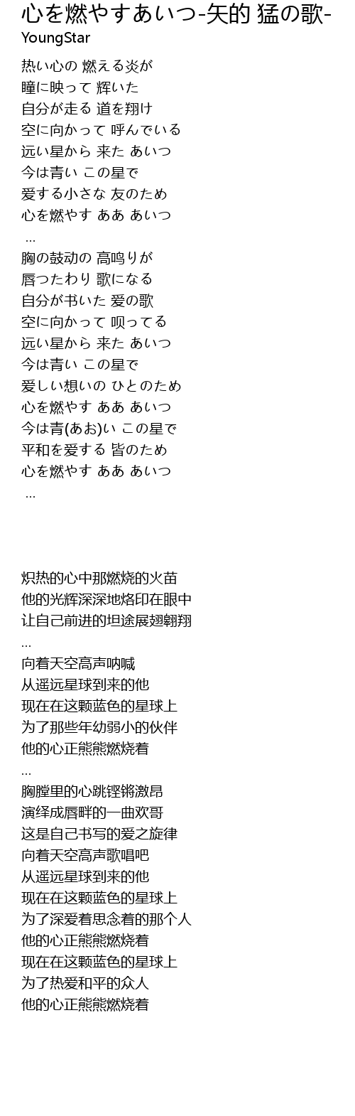 | Song | 心を燃やすあいつ-矢的 猛の歌- |