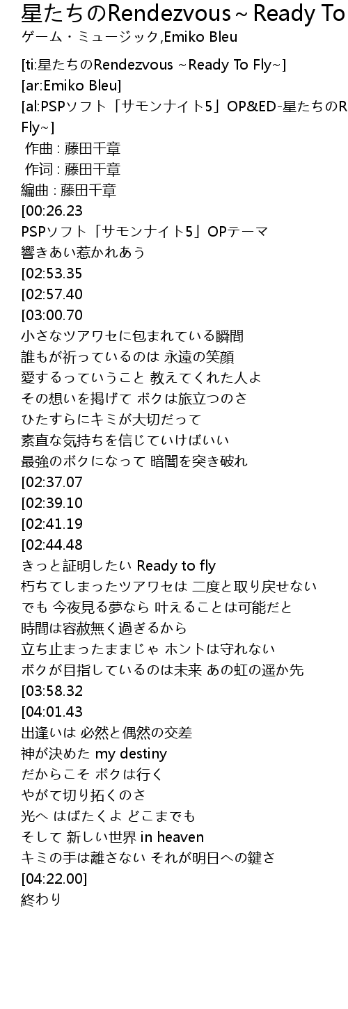 | [ti:星たちのRendezvous ~Ready To Fly~] | |