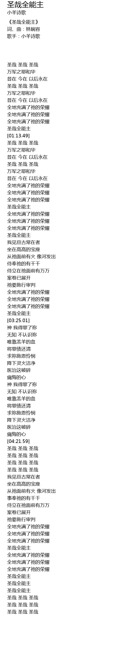 | [04:30.25] | 圣哉 圣哉 圣哉 |