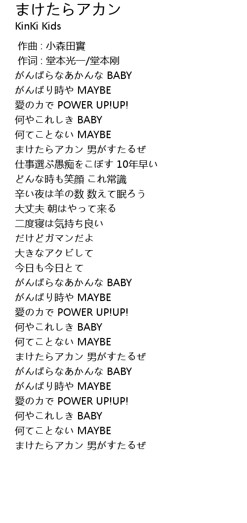 | [00:44.21] | まけたらアカン 男がすたるぜ |