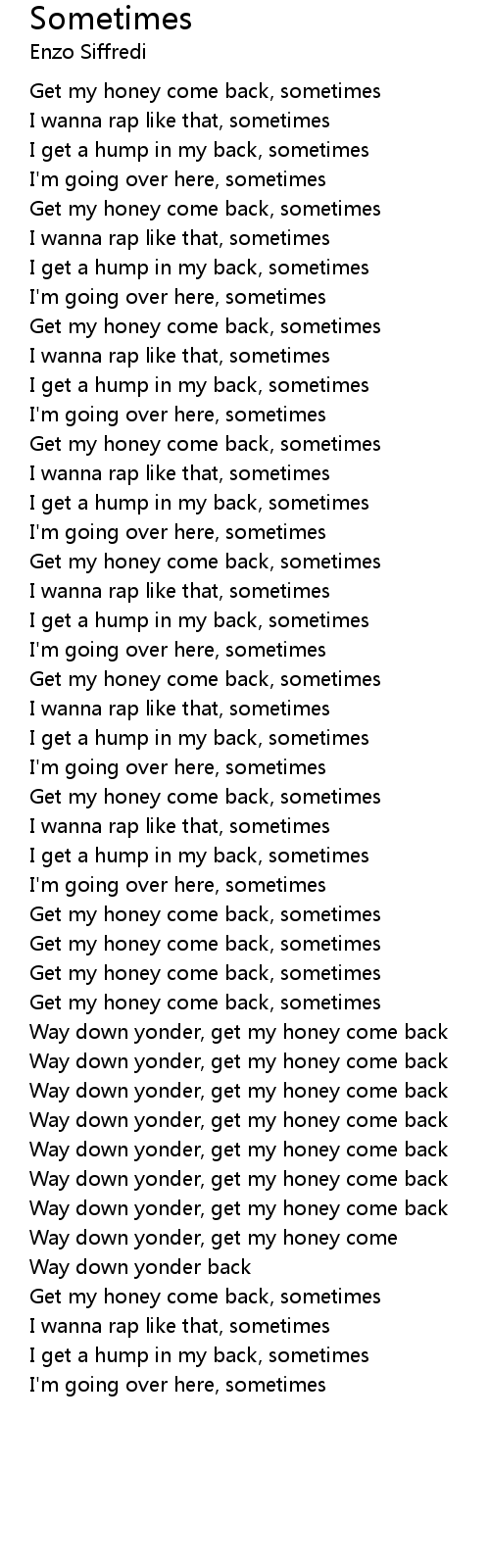 Get my honey come back, sometimes |