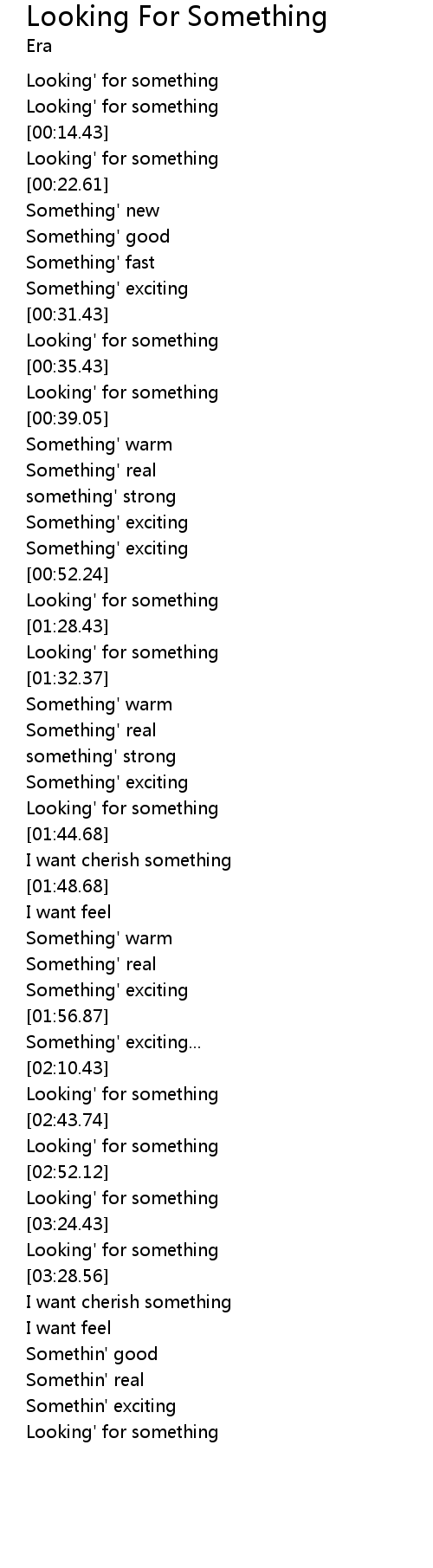 | [02:48.88] | Looking' for something |