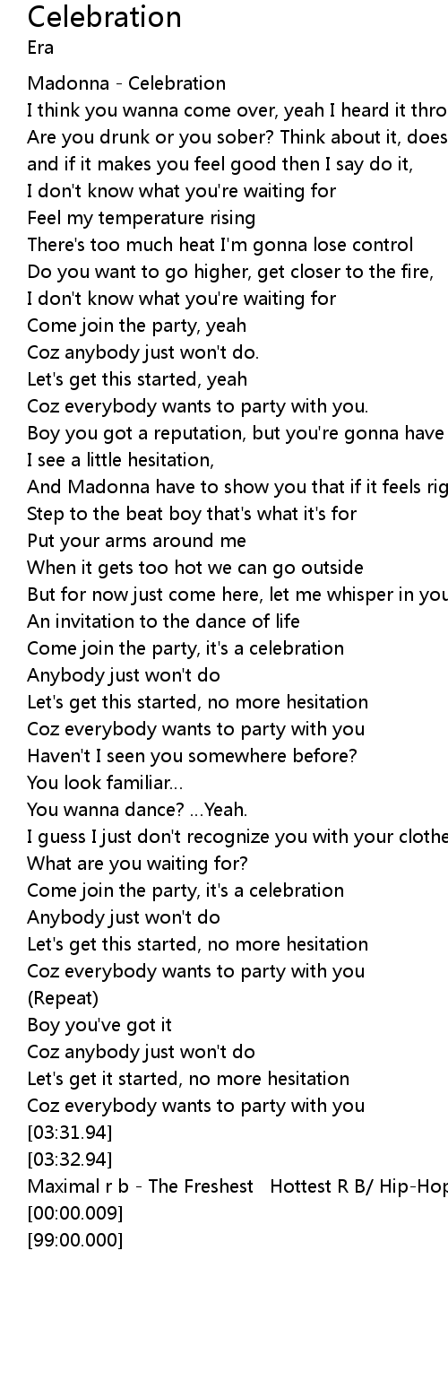 | [00:00.100] | Madonna - Celebration |