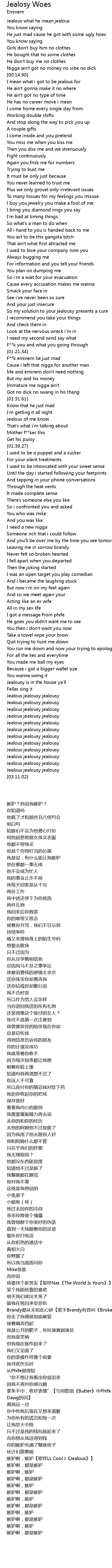 | [03:00.20] | Jealous jealousy jealousy |