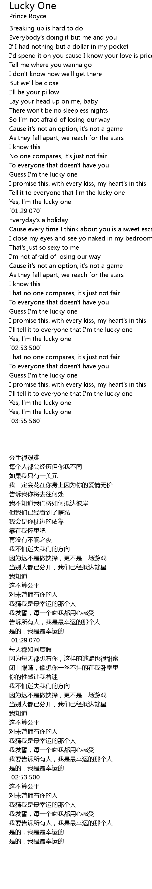 Guess I'm the lucky one |