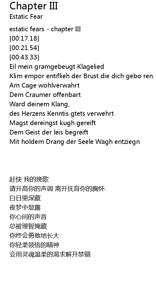 | [00:55.59] | Klim empor entiflieh der Brust die dich gebo ren. |