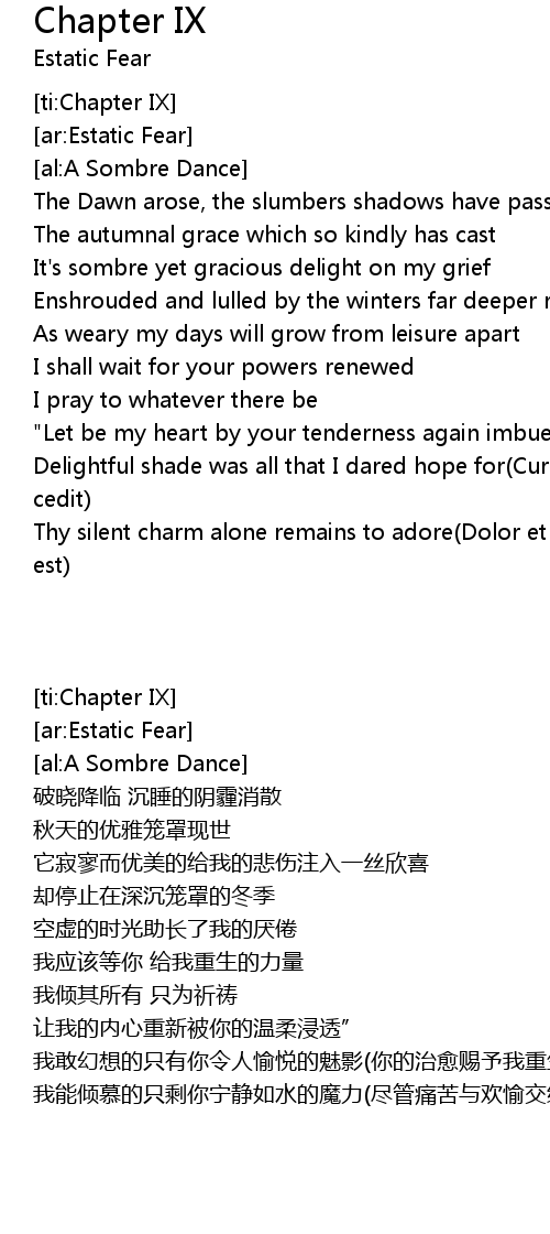 | [04:59.42] | Thy silent charm alone remains to adore Dolor et laetitia conjungtus est |