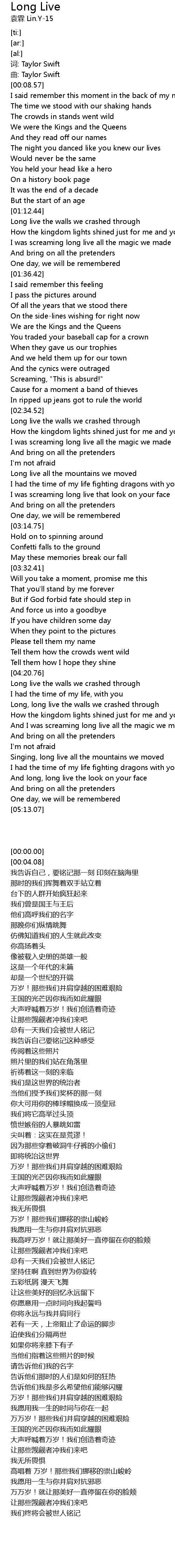 | [04:38.64] | And I was screaming long live all the magic we made |