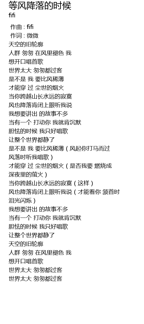 | [01:20.58] | 是不是 我 要比风稀薄(风起你打马而过 风落时听我唱歌) |