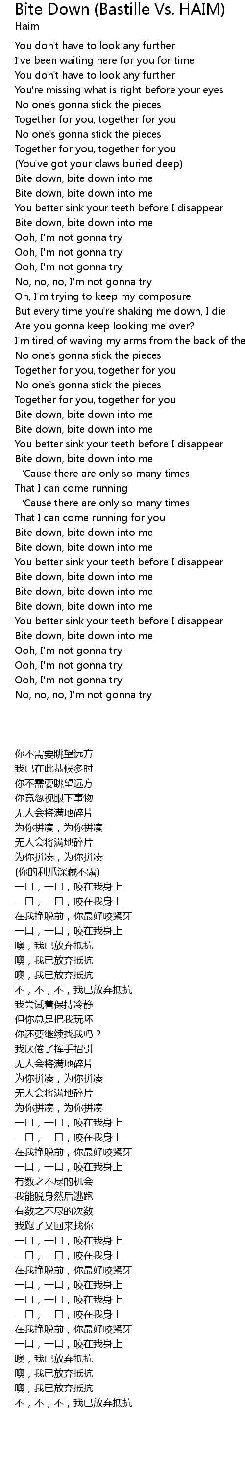| Song | Bite Down (Bastille Vs. HAIM) |