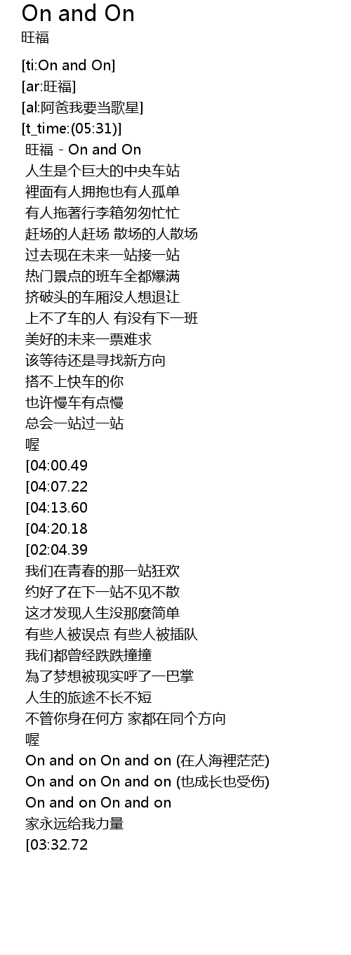 | [03:11.51] | On and on On and on (也成长也受伤) |