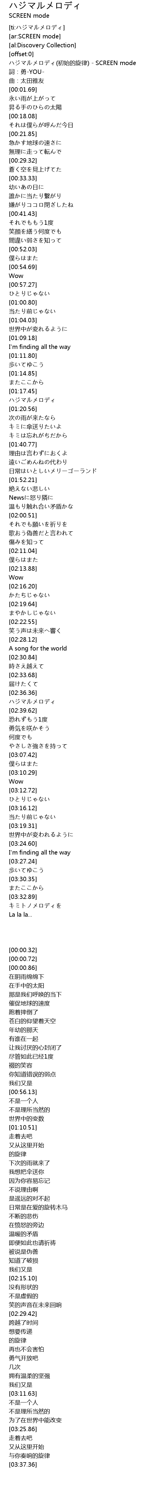 | [00:00.32] | ハジマルメロディ(初始的旋律) - SCREEN mode |