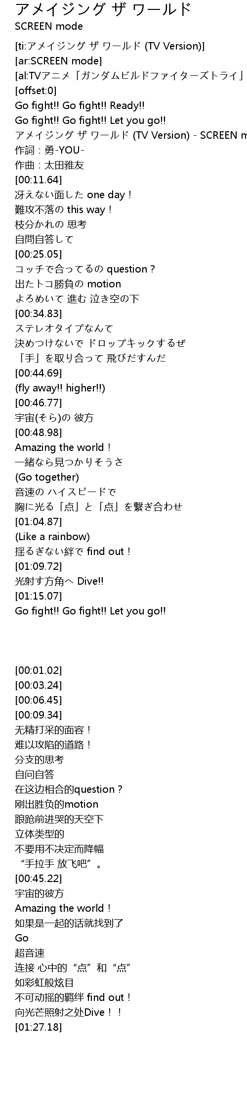 | [00:06.45] | アメイジング ザ ワールド (TV Version) - SCREEN mode |