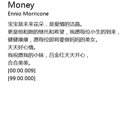 | [00:10.01] | 宝宝是未来花朵,是爱情的洁晶。 |