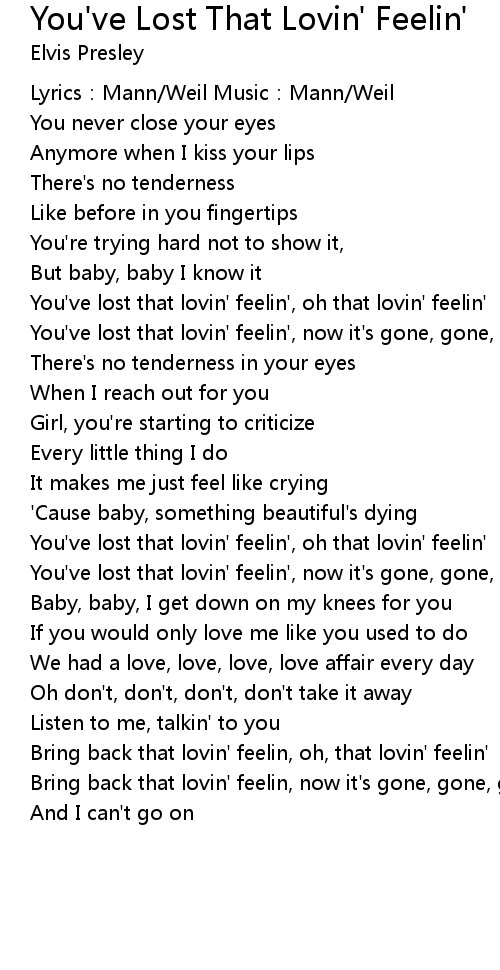 | You' ve lost that lovin' feelin', oh that lovin' feelin' | |