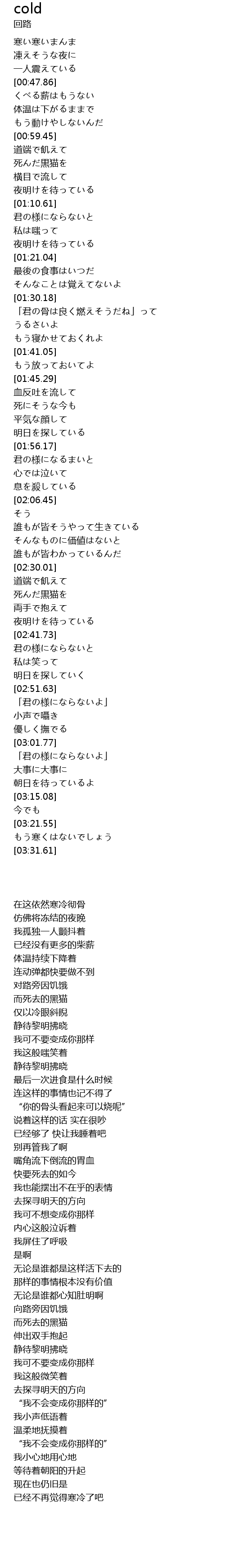 | [00:50.86] | 体温は下がるままで |