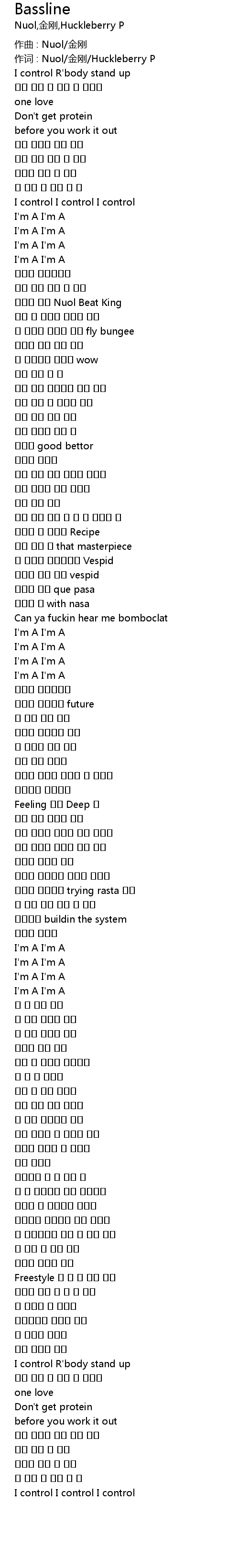 | 作词 : Nuol/金刚/Huckleberry P | |
