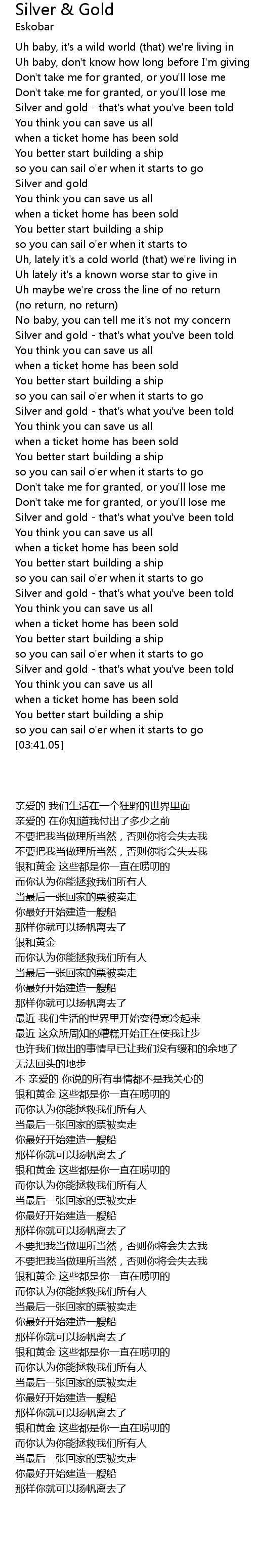 [01:39.08] Silver and gold - that's what you've been told