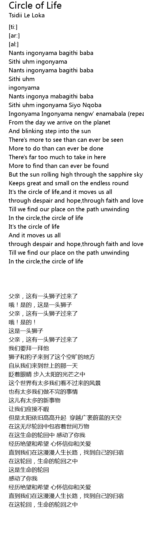 In the circle,the circle of life |