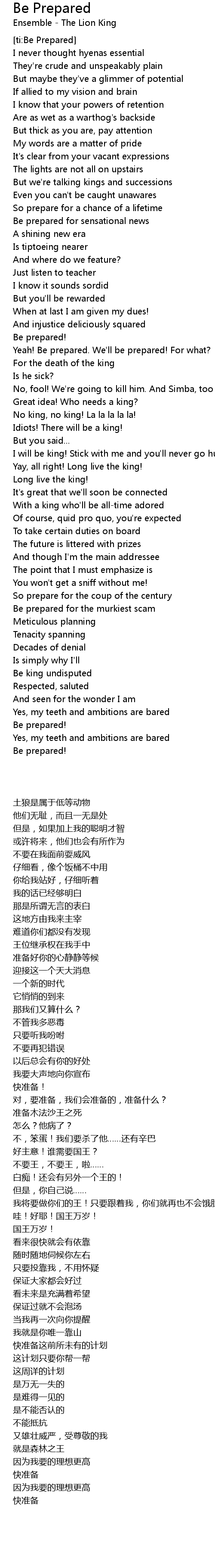 [ti:Be Prepared] |