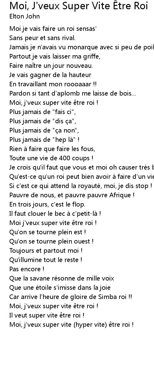 | [02:49.62] | Moi, j' veux super vite hyper vite tre roi ! |