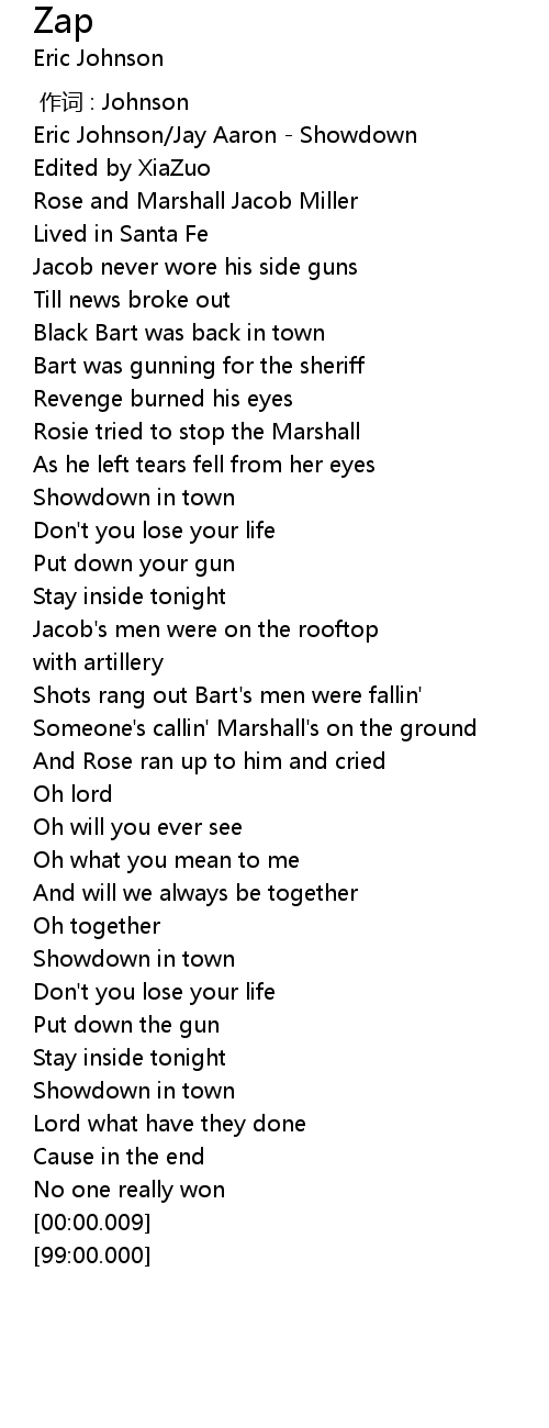 | [00:02.02] | Eric Johnson/Jay Aaron - Showdown |