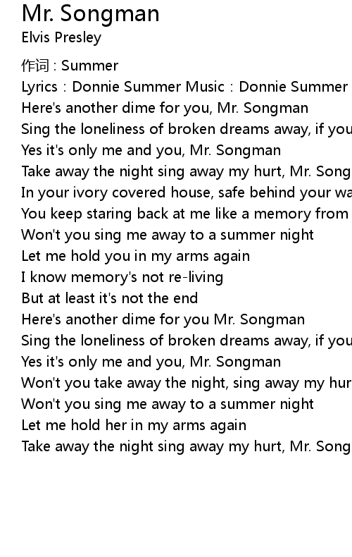 | Won' t you take away the night, sing away my hurt, Mr. Songman | |