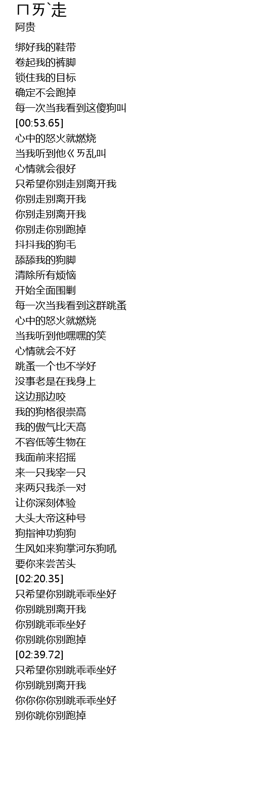 | [02:32.57] | ni bie tiao ni bie pao diao |