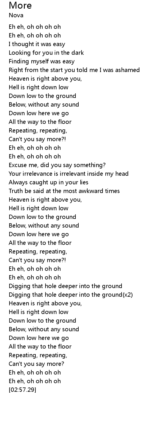 | [02:08.64] | Digging that hole deeper into the ground(x2) |