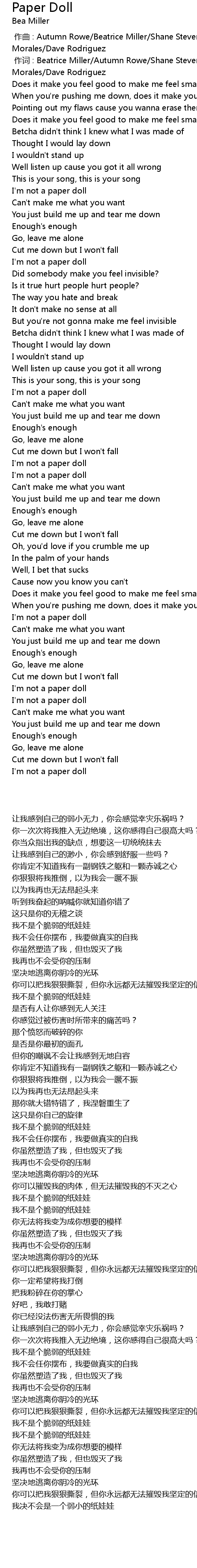 | [00:01.00] | 作词 : Beatrice Miller/Autumn Rowe/Shane Stevens/James Morales/Matt Morales/Dave Rodriguez |