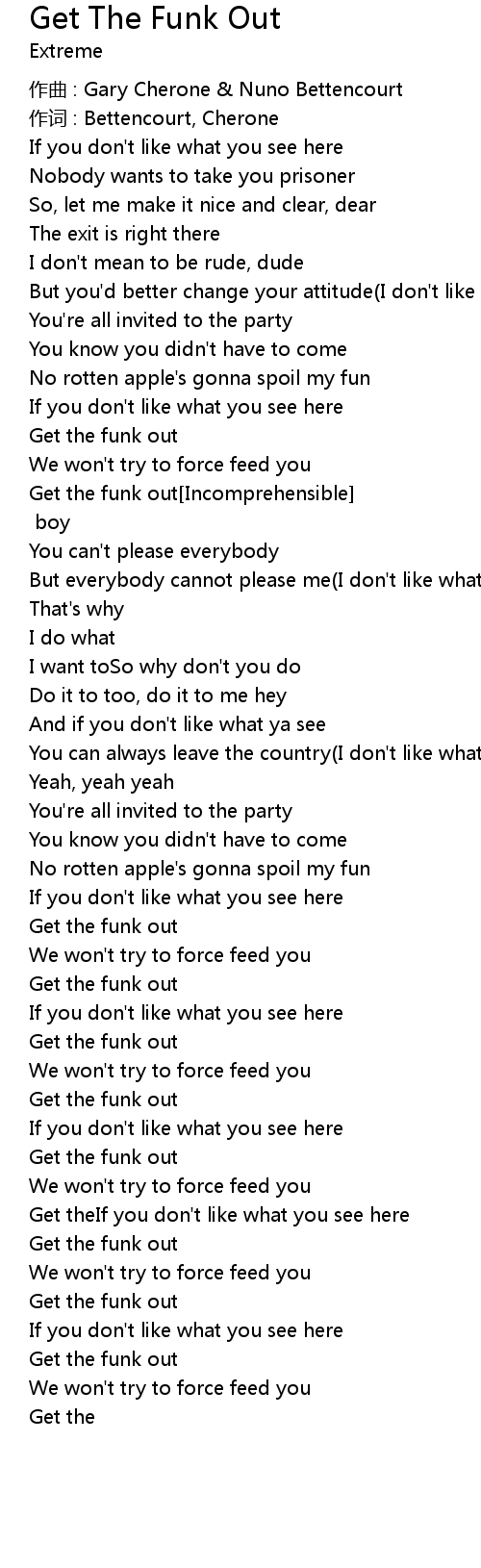 | Get the funk out[Incomprehensible] | |