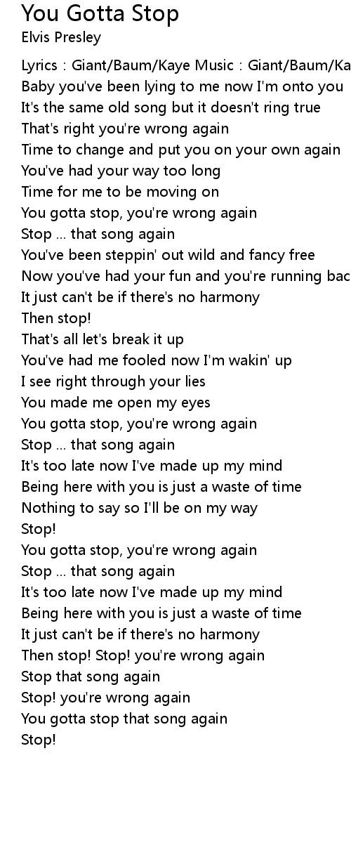 | Song | You Gotta Stop |
