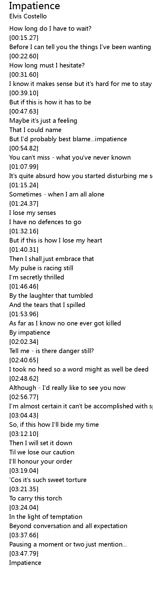 But I'd probably best blame...impatience |