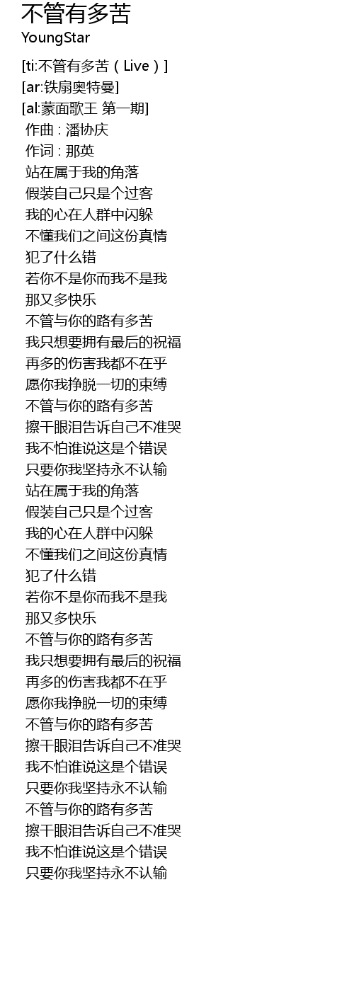| ti: bù guǎn yǒu duō kǔ Live | |