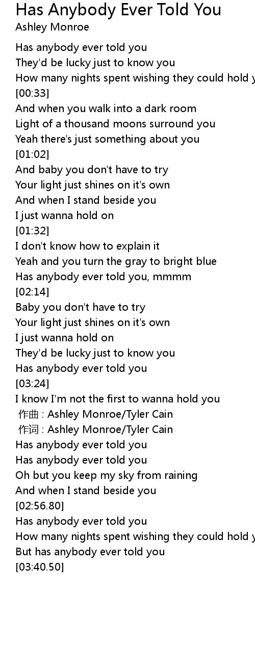 | [00:56.75] | Has anybody ever told you |