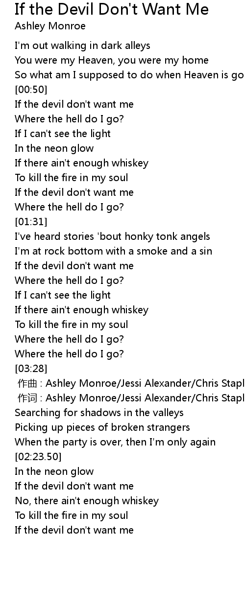 | [03:16.10] | If the devil don't want me |