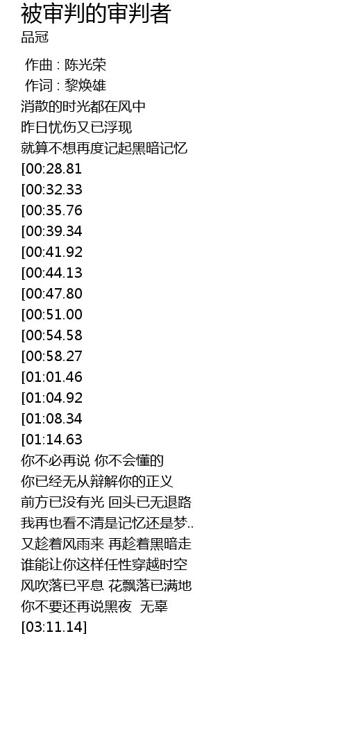| [02:06.60][01:08.34] | 你不要还再说黑夜 无辜 |