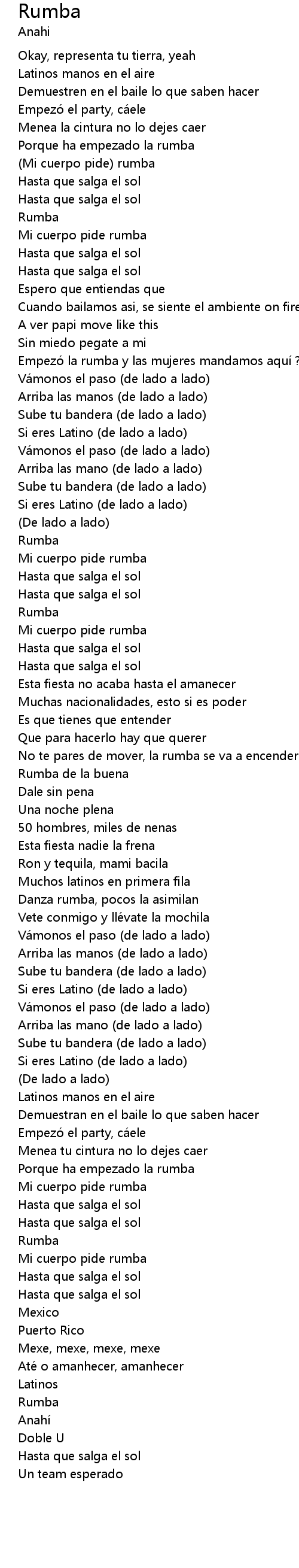 | [00:25.75] | Porque ha empezado la rumba |