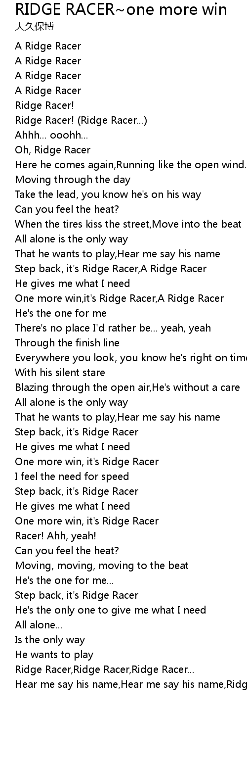 [00:41.000] One more win,it's Ridge Racer,A Ridge Racer
