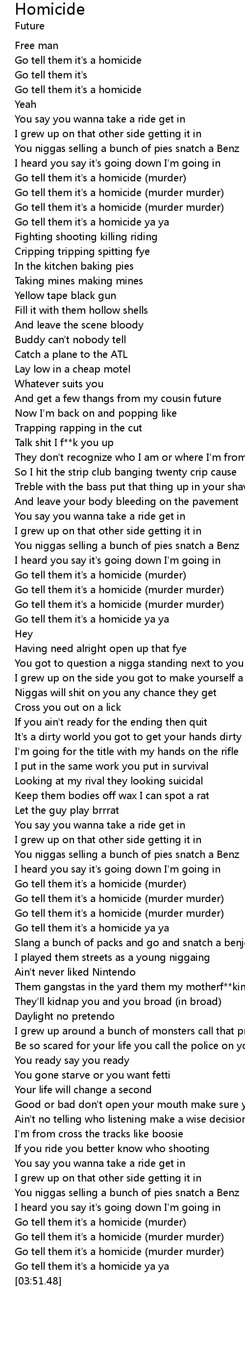 [01:33.01] Go tell them it's a homicide (murder murder)