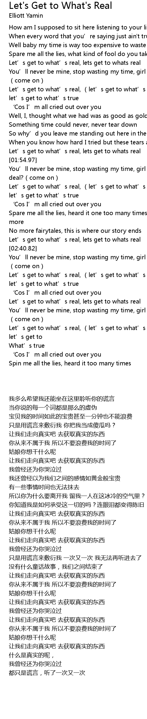 | [02:53.47] | Let’s get to what’s real, (let’s get to what’s real, baby) let’s get to what’s true |