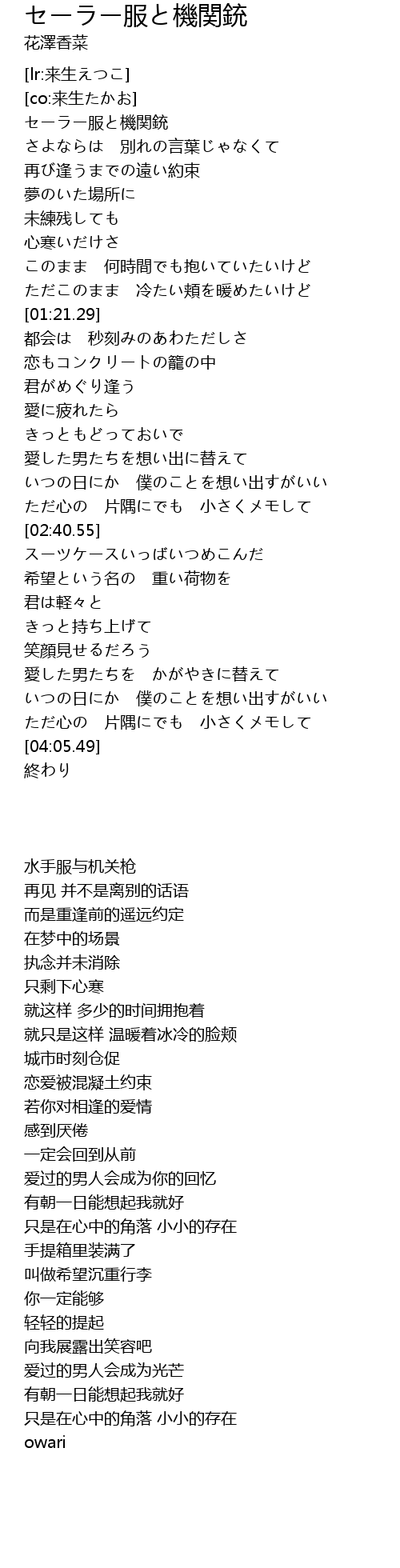 | [00:51.18] | このまま 何時間でも抱いていたいけど |
