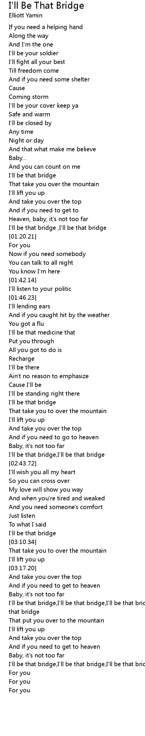 [03:23.35] I'll be that bridge,I'll be that bridge,I'll be that bridge,I'll be that bridge